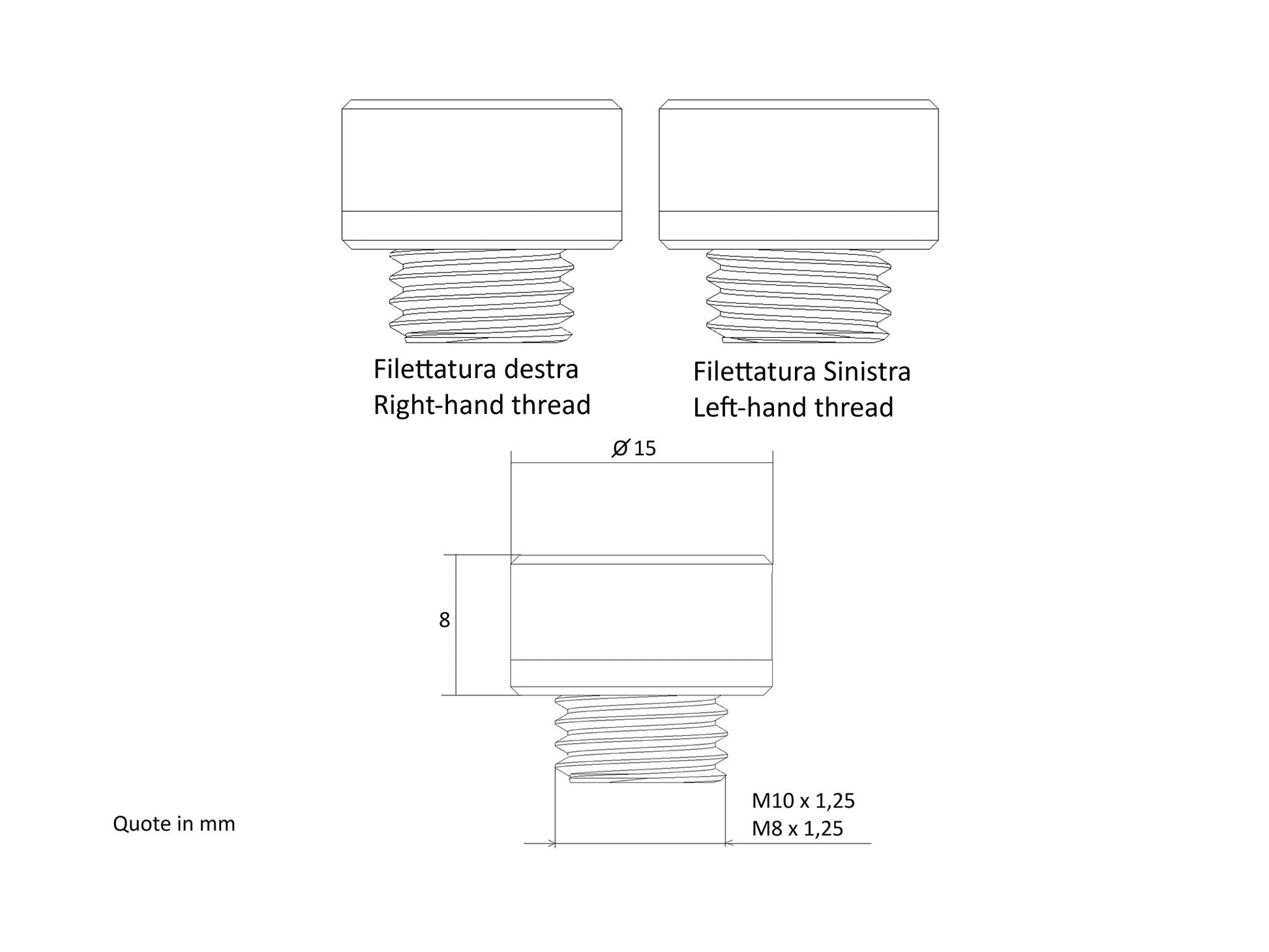 - M8 x 1.25mm thread (right-left)